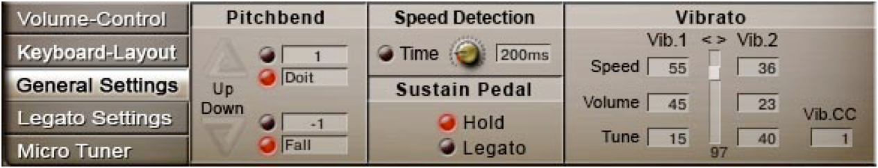 Vib. CC - sets the midi controller to control the vibrato (CC1 - Modwheel by default)